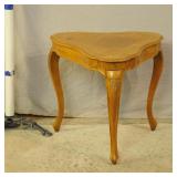 343.Inlaid walnut French style 3 leg side table; 68-494 - (1 leg is loose) - 20.5x19x19