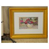 347.Framed floral painting by Anna Sandhu Ray; 274-117 - 21.5x17.5