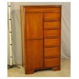 352.Walnut mid-century cedar lined chifferobe; 37-732 - 2 doors and 4 drawers - (small chips in veneer) - 34x20x60