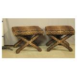 358.Pair of x base benches with leopard print fabric; 737-1716 - 22.5x17x18