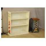 375.Nautical/lighthouse themed bookcase and lift top side table; 37-737,747 - 30.5x10.5x35 bookcase; 11x11x22 table