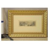 383.Small framed engraving "Nelson's Column, London" by Cecil Forbes; 274-069 - heavy ornate gold frame - 18x22