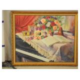 382.Large framed painting on canvas "Music and Memories" by Van Martin; 274-031 - still life - piano scene - artist signed - 33.5x27.5
