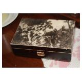 GUNS, MOUNTS, HOUSEHOLD American Security 60 gun safe Encore 50 cal. black powder rifle w/scope Ruger .17 rifle SKS rifle 7.62 New & reload 12 ga. ammo Various new & reload rifle ammo Mounts: Elk wall mount Full black bear mount Black bear rug Mule deer mount & rug White tail mounts (4) Caribou rack Bobcat Alligator skin Various sporting related prints Pheasant mounts Pine gun cabinet Various gun cases Various hunting gear Skill Stop machine Grill Rustic patio bench Schnauzer dog figurines Garage refrigerator Small chest freezer Large upright freezer Furniture: Howard Miller grandfather clock (model 610-853) 9 pc. oak dining room set Living room furniture Oak flat top desk Dell computer system Plaid love seat Oak CD/DVD cabinet Oak glass front storage cabinet Glass 6 ft. curio cabinet Oak hallway bench Candle stand Glass top table Kneehole desk Slant front desk Oil on canvas painting by Morris Katz Brass fire extinguisher Pfalzgraff china Various wash stands Matching LG washing machine/electric dryer (front loading) Pine bedroom set Pine breakfast table w/4 chairs Large flat screen TV w/surround sound Unique deer coffee table Various sporting themed rugs Stack bookcase – modern Stain glass 3 pc. glass top table set Cherry homemade chest Gray living room set Mid-century bedroom set Music boxes Various flat screen TV’s Cherry jewelry armoire Vera Bradley purses Dome top trunk Brunswick slate top pool table Lawn jockey Much more not listed