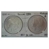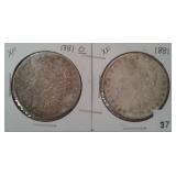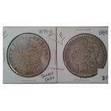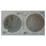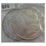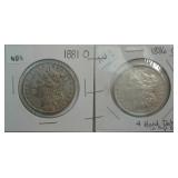 573 MORGAN DOLLARS 1881-O, 1882-O MORGAN DOLLARS, AU+, VF.