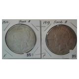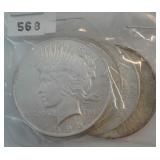 568 PEACE DOLLARS 1922, 1922, 1923, 1925 PEACE DOLLARS, VF-AU.
