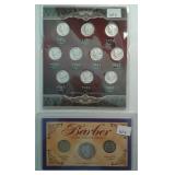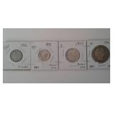 511 U.S. DIME SET U.S. DIME SET: 1856 SEATED, 1903 BARBER, 1941 MERCURY, 1964 ROOSEVELT, 1970-S CLAD.