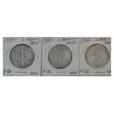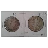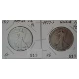 519 WALKING LIBERTY HALF DOLLARS 1917, 1927-S WALKING LIBERTY HALF DOLLARS, G, VG.