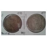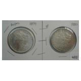 569 MORGAN DOLLARS 1879-O, 1884 MORGAN DOLLARS, VG-F.
