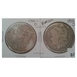 570 MORGAN DOLLARS 1901-O, 1021-D MORGAN DOLLARS, XF (TONED), VF.
