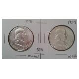 546 FRANKLIN HALF DOLLARS 1953 FRANKLIN HALF DOLLAR, BU. 1953-D FRANKLIN HALF DOLLAR, AU.