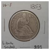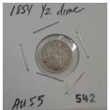 542 1/2 DIME 1854 U.S. 1/2 DIME, ARROWS, AU+.