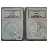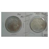 565 SILVER DOLLARS 19986-S ELLIS ISLAND SILVER DOLLAR AND 1987 CONSTITUTION SILVER DOLLAR, PROOFS.