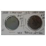 556 LARGE CENTS 1850, 1852 LARGE CENTS, F, XF.