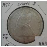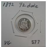 577 HALF DIME 1872 U.S. HALF DIME, VG.
