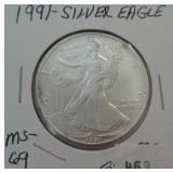 529 AMERICAN SILVER EAGLE 1993 AMERICAN SILVER EAGLE, 1-TROY OUNCE, UNC.