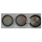 557 BUFFALO ROUNDS & LAFAYETTE DOLLAR THREE (3) SILVER LAYERED BUFFALO ROUNDS (REPROS). SILVER LAYERED LAFAYETTE DOLLAR (REPRO).