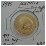 499 GOLD AUSTRALIAN 1990 $200 GOLD .917, .29 TROY PROOF.