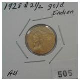 505 GOLD INDIAN 1928 U.S. $2.50 GOLD INDIAN, AU.