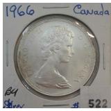 522 CANADIAN SILVER DOLLAR 1966 CANADIAN SILVER DOLLAR, BU, NICE.