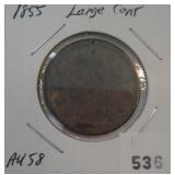 536 LARGE CENT 1855 LARGE CENT, AU.
