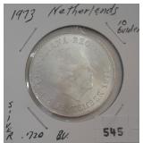 545 NETHERLANDS 10-GULDEN 1973 NETHERLANDS 10-GULDEN SILVER, UNC.