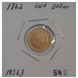 549 GOLD DOLLAR 1862 U.S. GOLD DOLLAR, CIVIL WAR ERA, MS+.
