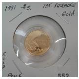 552 GOLD 1991-W U.S. $5.00 GOLD, MT. RUSHMORE, PROOF.