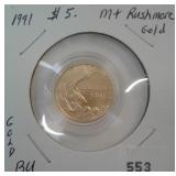 553 GOLD 1991-W U.S. $5.00 GOLD, MT. RUSHMORE, BU.