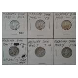 560 MERCURY DIMES 1935,1936, 1937, 1941-S, 1942-S, 1943-S MERCURY DIMES, VG-F.