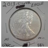 564 SILVER EAGLE 2013 SILVER EAGLE .999, MS.