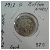 578 BUFFALO NICKELS 1913-D BUFFALO NICKEL, VARIETY TWO, G.