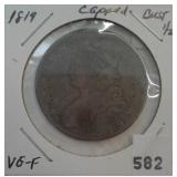 582 CAPPED BUST HALF DOLLAR 1819 CAPPED BUST HALF DOLLAR, VG-F.