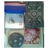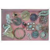 282 PINS, WATCH, EARRINGS & MORE LARGE PIN, RING WATCH, POST EARRINGS, AVON RING, PIN (PORCELAIN SWAROVSKI CRYSTAL).