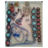 267 PINS, CUFFLINKS, ETC. STERLING PIN, MISC. JEWELRY, STERLING CUFFLINKS, INDIAN TURQUOISE STONES.
