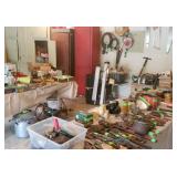 Fishing Equipment Tools Tool Boxes Yard Tools Ford Tractor Flat Bed Trailer 1946 Willys Jeep w/ title 1994 Buick Regal (only 33,000 miles) Deer Mounts Cast Iron Cauldrons Vintage metal outdoor furniture Milk Cans Wood burning stoves Buttur Chuns Vintage Toys & Games Sewing machines FABRIC GALORE Carnival Glass Vintage metal kitchen cabinets/counters Stunning antique Mahogany furniture Vintage Accordian in case Hazel Atlas Glasswaye (Pink Elephants) Artwork Antique Crocks Vintage Fans Vintage Tupperware Corningware Huge selection of Bauer Several sets of China Fenton Vintage/Retro Clothing Beautiful Victorian Furniture Lawyers/ Barrister book cases Christmas Pocket Knives Jewelry The Friendly Village China Set Decanter sets Vintage handswen quilts Cowboy Hats +++++++++++