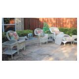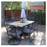 Shake off your summer blues and come in out of the heat! Outdoor Patio Dining Table, 6 Chairs & Umbrella Pewter Collection |