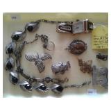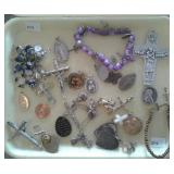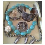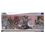 Jewelry to include a large selection of vintage necklaces, bracelets, watches, rings and earrings. Also includes some sterling, gold filled and a small amount of 10k & 14k jewelry from estates. Coins to include A fine selection to suite all budgets including bulk lots of 90% silver, slabbed silver dollars, bulk Lincoln cents, bulk foreign, 1893 Isabella Quarter MS, 1875 CC twenty cents, 1842 seated dollar F-XF, Barber coins, small gold bullion, (2) 1988 gold Young Astronauts pieces.(same weight/size as a $5.00 gold) Inc. and proof, 1937 3-legged buffalo nickel and much more. |