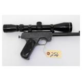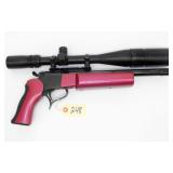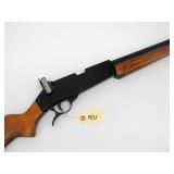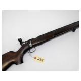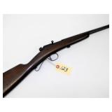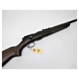 BOLT ACTION SINGLE SHOT WITH FRONT AND REAR SIGHTS, 22" BARREL. CONDITION: LOTS OF SCRATCHES ON STOCK. RUST ON BARREL. EXCELLENT BORE AND ACTION.