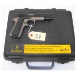 STAINLESS STEEL, TWO (2) MAGS, 4" BARREL, SN DTF7496. COMES WITH CASE. CONDITION: USED BUT IN OVERALL GOOD CONDITION. GOOD BORE.