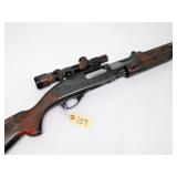 PUMP ACTION CHAMBERED FOR 2 3/4", FULL CHOKE, VENTED RIB, HIGH GRADE STOCK, 30" BARREL, SN 1195710V. CONDITION: LOT OF OVERALL WEAR. CRACK AT WRIST. GOOD BORE AND ACTION.