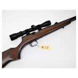 BOLT ACTION WITH TASCO 4-12X40 SCOPE, SLING, 24" BULL BARREL, SN 222646. CONDITION: SEVERAL LIGHT SCRATCHES ON STOCK AND SEVERAL SPOTS ON BARREL. GOOD BORE AND ACTION.