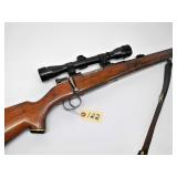 BOLT ACTION WITH CLIP, FRONT AND REAR SIGHTS, 25" BARREL. CONDITION: SCRATCHES AND HANDLING MARKS ON STOCK. SOME FINISH LOSS ON BARREL. EXCELLENT BORE AND ACTION.