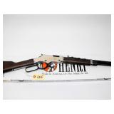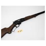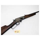 LEVER ACTION WITH FRONT AND REAR SIGHTS WITH HOOD, TUBE FED, CHECKERED STOCK, 20" BARREL, SN F747928. CONDITION: LIKE NEW BUT MISSING SIGHT ELEVATOR.