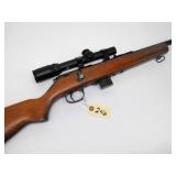 BOLT ACTION, TUBE FED, FRONT AND REAR SIGHTS, 24" BARREL. CONDITION: NORMAL WEAR AND SCRATCHES. GREAT BORE AND ACTION.