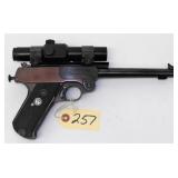 BAKALITE GRIPS, ONE (1) MAG, 2 1/4" BARREL, SN 873505. COMES WITH HOLSTER. CONDITION: SOME HOLSTER WEAR. GOOD BORE AND ACTION.