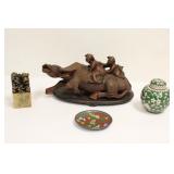 Estate of late Dr. Nakanishi. Collection of American 18th and 19th century furniture, including a rare large “plate” cabinet, collection of antique advertisement wall plaques and memorabilia including a rare 19th century advertisement wall clock for Michell’s cigarette. Important paintings, three pencil/color pencil drawings by Diego Rivera including two rare nude girl images, two oil abstract paintings by Mario Carreno, pastel by Manuel Mendive and Carlos Merida, 19th century oil by William Henry Hamilton trod, two 17th oil paintings attributed to Jan Frans Van Bloeman and Abraham Van Beyeren, and more. A rare collection of 15+ pieces of antique Chinese export silvers, including platters, vases, repose designed boxes, and a rare censor. Important antique Japanese 3 piece silver tea set by Yokohama Bisansha with beautiful repose work to depict orchid flower. Fine Chinese snuff bottles, including a rare Hetain example of double bottle in jumping fish motif. Important Chinese water color scroll by Fan Zheng (范曾) depicting the portrait of scholar (the painting was purchased from the artist himself in Japan in early 1990’s). Fine collection of Chinese porcelain pieces, including an important vintage Chinese large famille rose vase with panels decorated with flowers in four seasons and finely written calligraphy, Chinese 18th century export porcelain. Important Chinese antique gilt bronze sculpture of Daoism Deity, and a highly important genuine Chinese Archaic bronze Ding (mid to late Shang dynasty). Chinese seals, including an important large Hetain white jade seal with qilin group motif finial (with GIA certificate). Collection of antique Japanese Sumidagawa pottery pieces, including a large moon vase with monkey group. A highly important Chinese 18th/19th century possible zitan wood canopy bed (a beautiful example). Fine jewelry, platinum diamond ring center approx. 1.0ct gem quality diamond (VS/E,F), large 18k garnet necklace, rare 19k rose gold cloth pattern bracelet, magnificent retro ruby and diamond ring and earring set, an important 18k diamond and jadeite necklace (GIA report), deco lady’ platinum watch, Omega 18k/SS man Constellation wrist watch, and lot more |