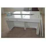 *unusual and absolutely Arhaus gorgeous executive desk with a beautiful, leather Arhaus executive chair. (Retailed for $1,200! You will never want to stop working)