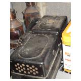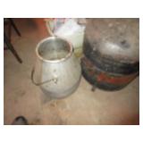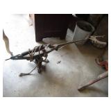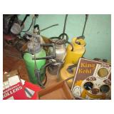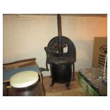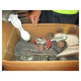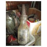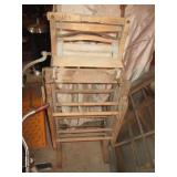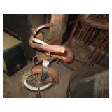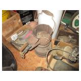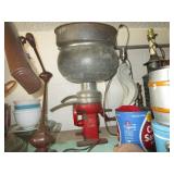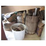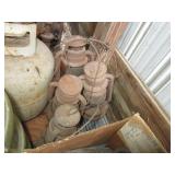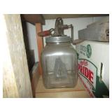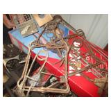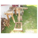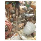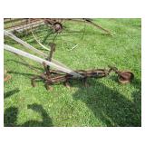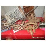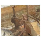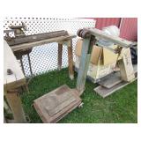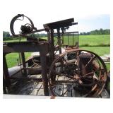 Primitives/Household: Wallace Implement (Medina) IH tractor umbrella; Lionel G & O ga. trains; milk cans; nail kegs; crocks & jugs; old jars; butter churns; lard press; iron kettle; wood pulleys; galv. washtubs; wooden crates; oil jars & cans; old water pumps; cream separator; many old farm primitives; misc. advertising items; TruScale & other old farm toys; tin trucks; Victrola; misc. old furniture; barn slate; old sleds; patio heater; Indian books & statues; wheelchair lift; misc. household items. Check the week of the sale for late finds.
