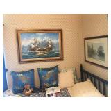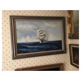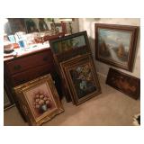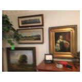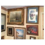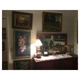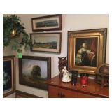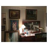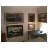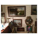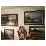 Over 200 pieces of circa 1900 – 1980 ORIGINAL OIL PAINTINGS, Water Colors, Etchings most signed by the artist, many with provenance. Pen & Ink, Nautical, Landscape Oils, Equestrian. Seascapes, Antique Portraits. Original oil painting by R. Besse 36” x 24” River scene.